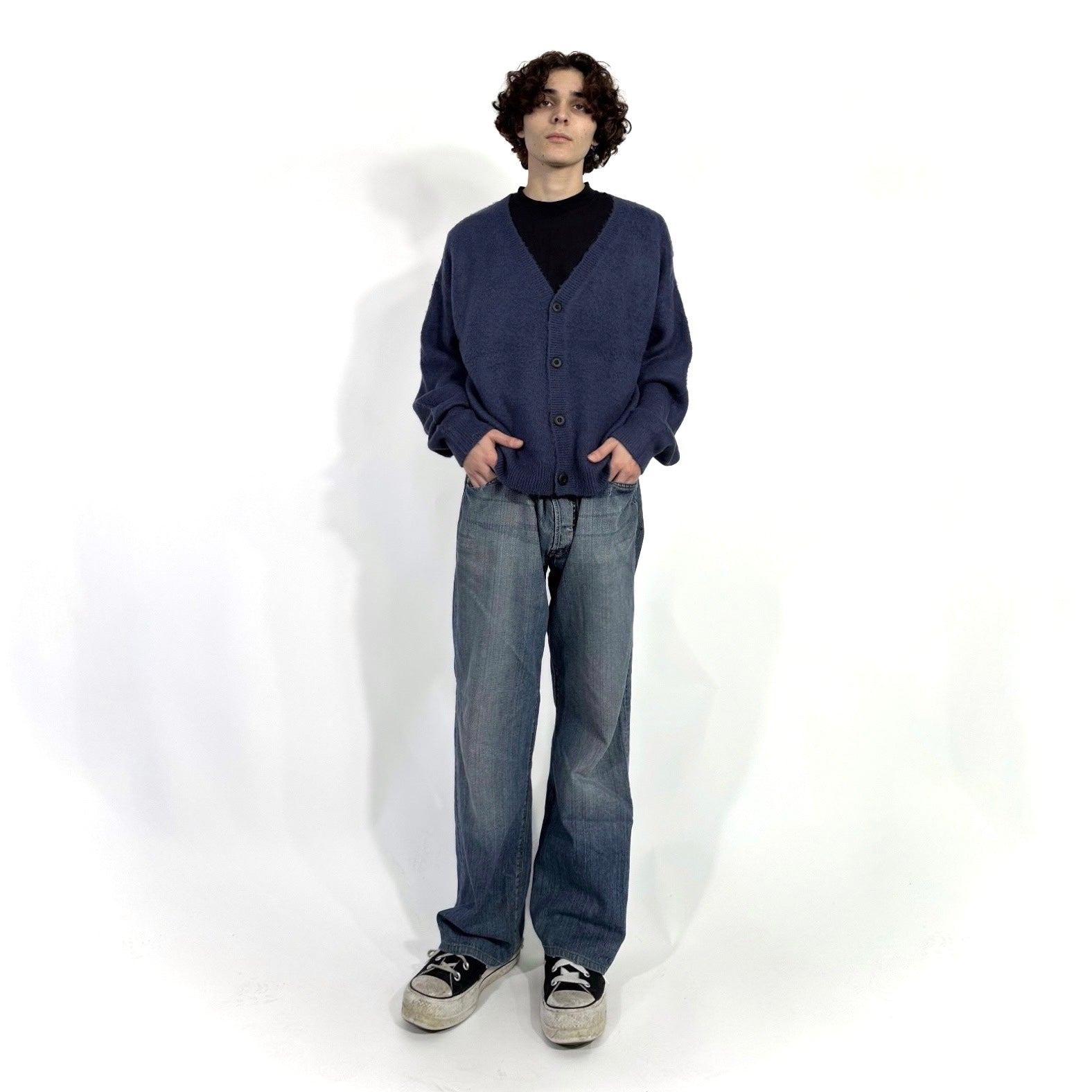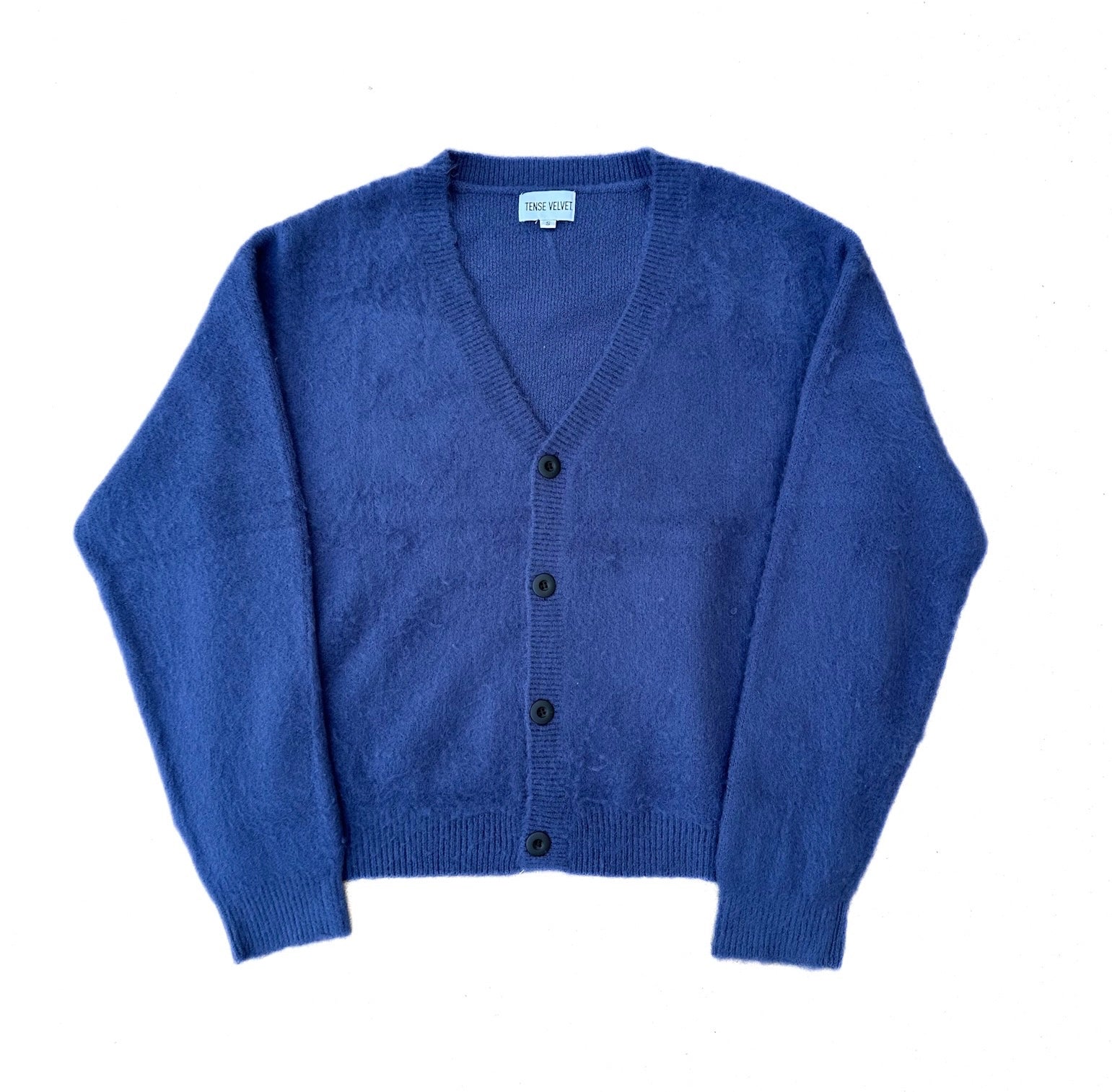 BRUSHED BACK MOHAIR CARDIGAN - NAVY